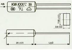 KW型溫度保護是由碟形高靈敏雙金屬元件、動觸頭、靜觸片、固定底版、外殼和耐溫導線等組成。工作時雙金屬元件處于自由狀態,動觸頭與靜片閉合,電路導通。當使用電器因故發熱,溫度上升到該產品額定動作溫度值時,雙金屬元件受熱產生內應力而迅速動作,推開動觸頭,使觸點斷開,切斷電源,電器停止工作,從而起到過熱保護作用。當被保護電器溫度下降到該產品的額定復位溫度值時,雙金屬元件恢復到初如原狀態動觸點閉合,電器恢復工作。該產品具有電阻小、感溫快、動作迅速、可靠、體積小等優點。